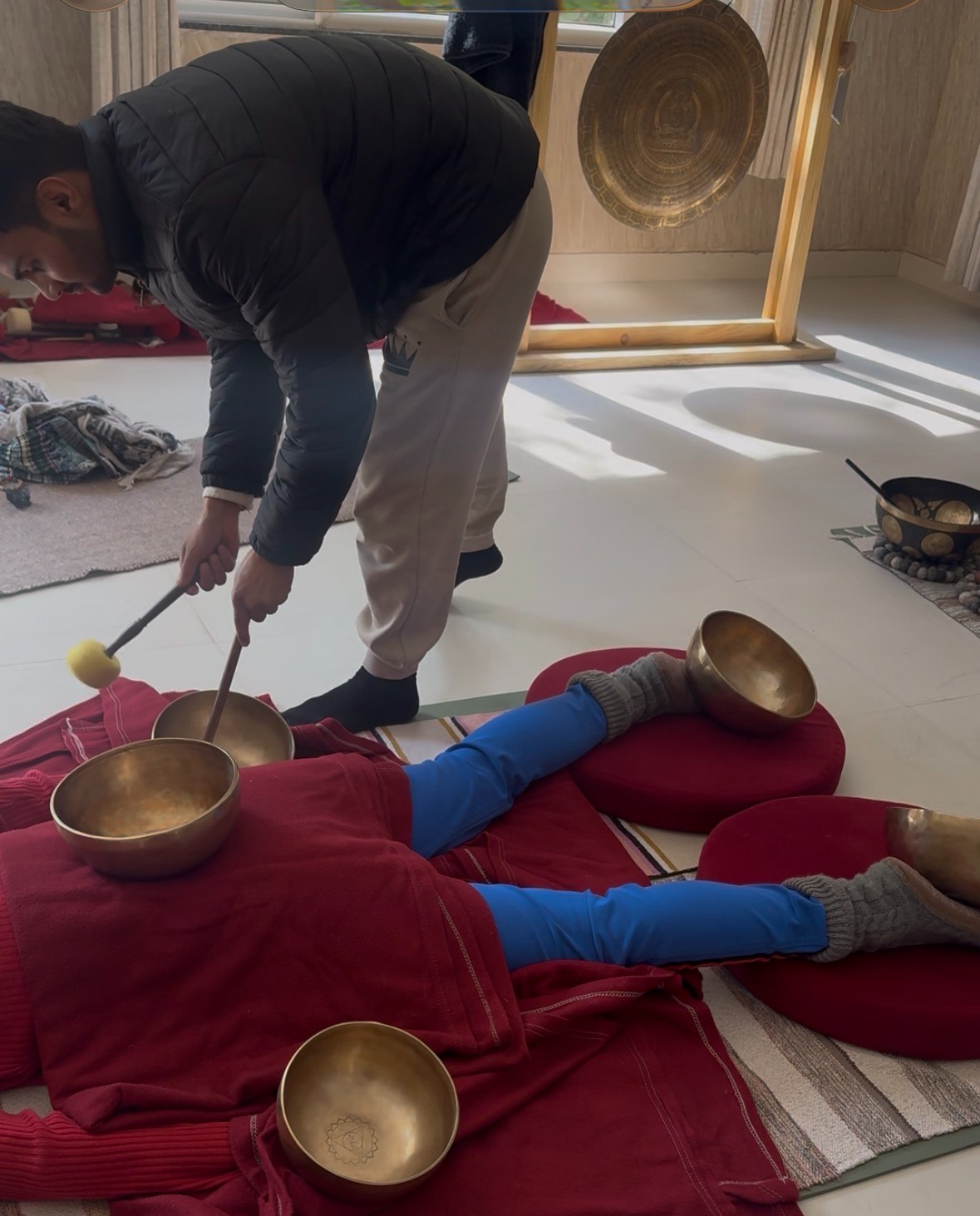 As a Level 4 Certified Sound Healer, Aditya integrates the ancient practice of Nada Yoga (Yoga of Sound) into his sessions using Tibetan singing bowls and vibrational frequencies.